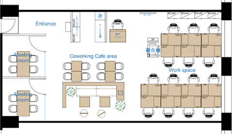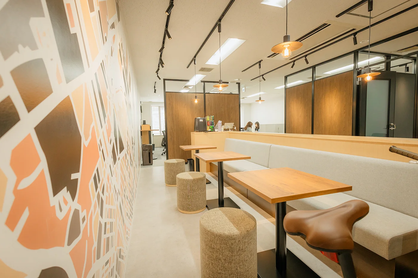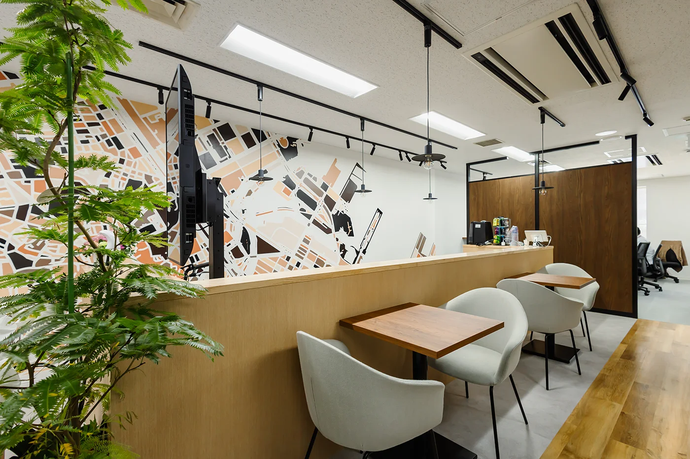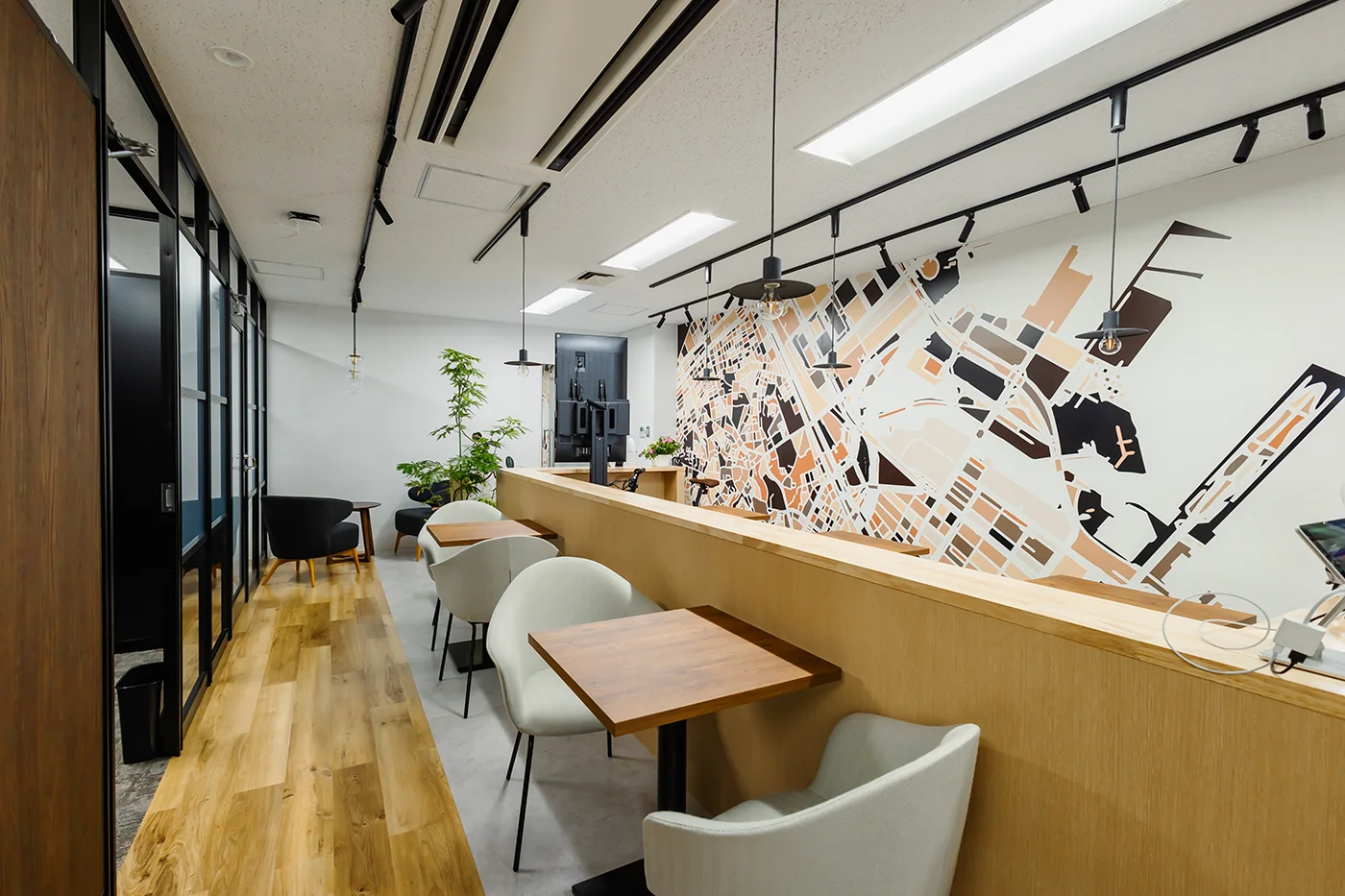 | 限られた面積で心地よい空間をつくる | 細やかな動線設計で、執務室・カフェ・くつろぎスペース・会議室をコンパクトに配置 |