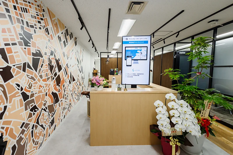 エントランスのサイネージは、コンパクトなサイズのものを選定しました。専用の待合スペースを設けることなく、来訪者を自然に引き留められる動線を意識した設計により、その分の面積を執務スペースに充てることができています。限られた空間の中では、動線設計が使い勝手に直結しています。
