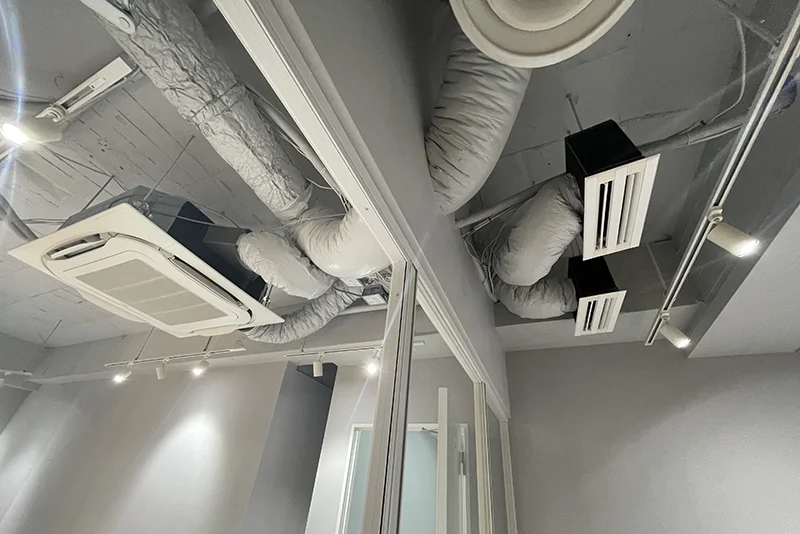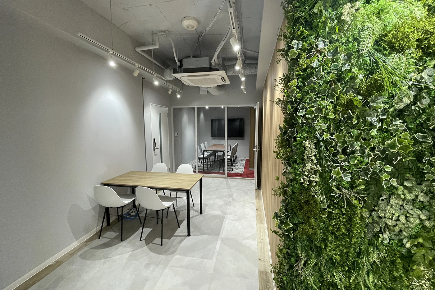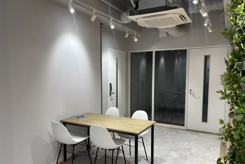 | 会議室の遮音性 | 壁を天井まで完全クローズ。既存空調からダクトを分岐 |