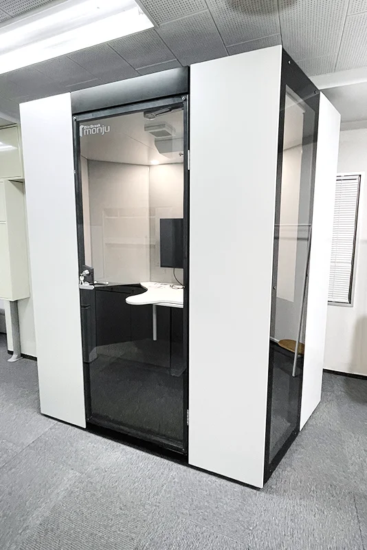 スペース設計のなかで特にこだわったのが、3名用のテレカンブースの導入です。大がかりな工事をせず、防音機能を備えたブースを設置するというかたちで、個室をさらに確保しました。